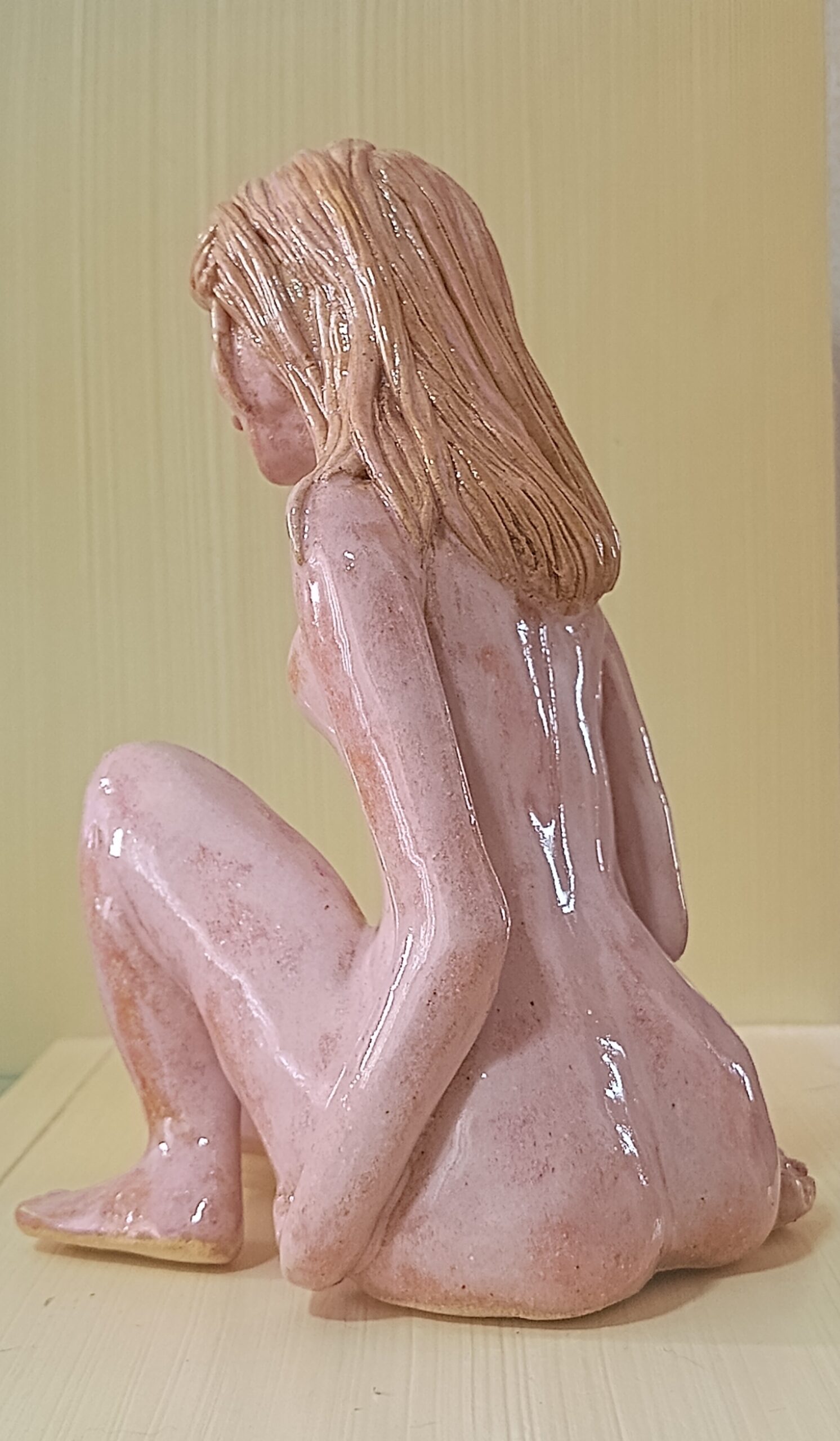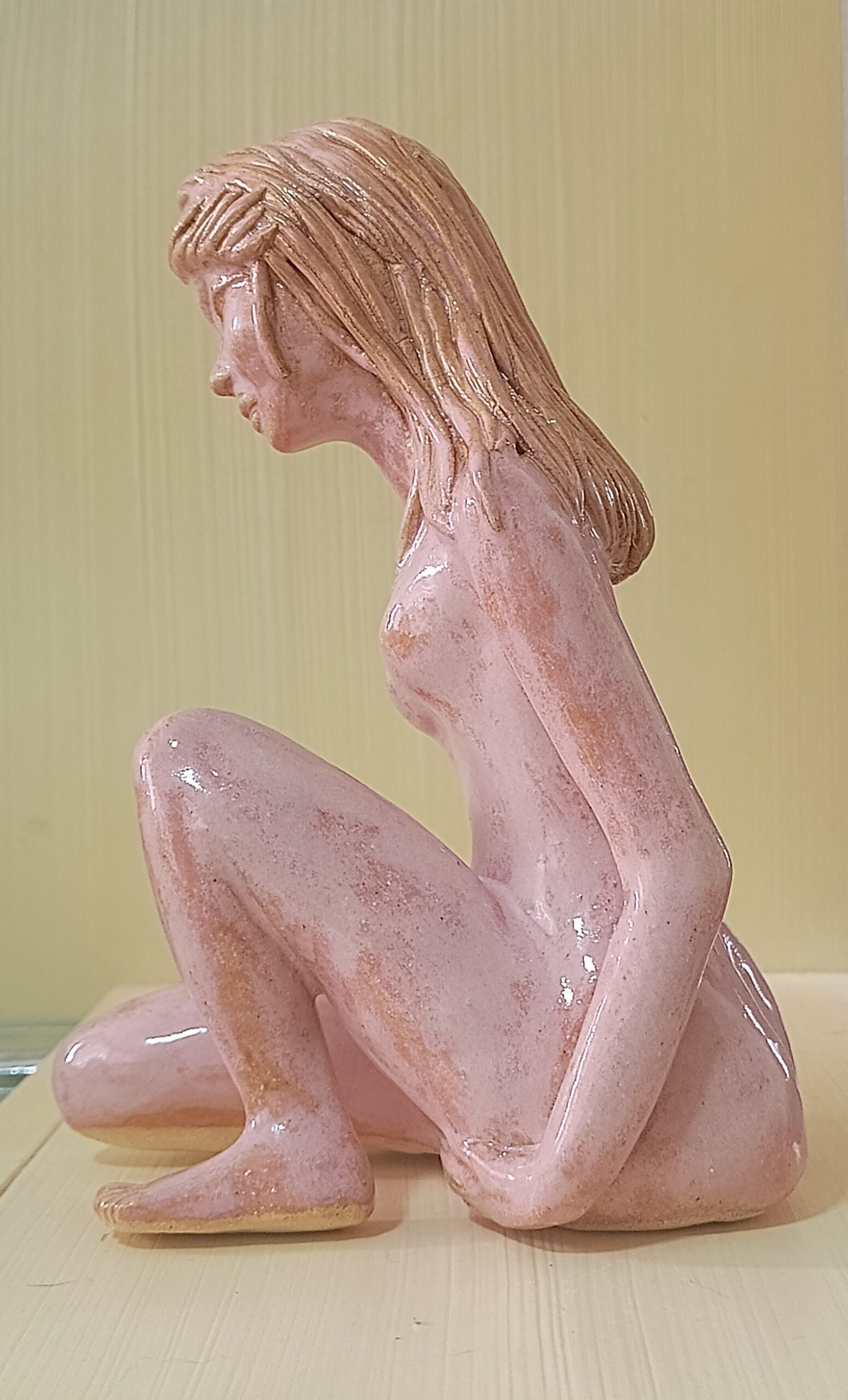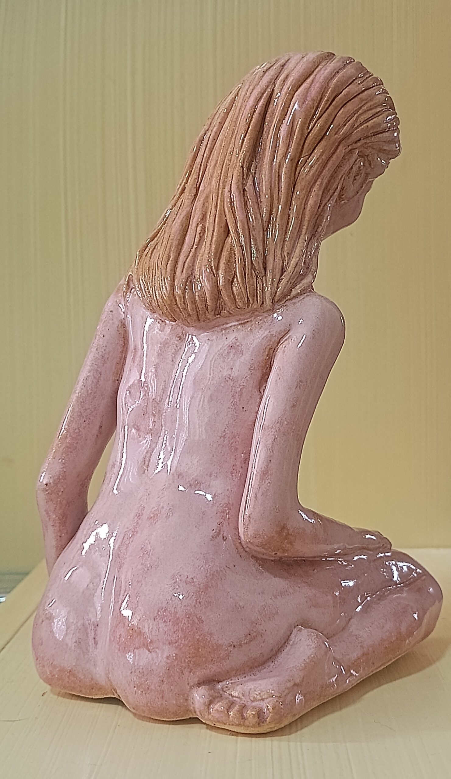 Portfólio Cerâmica Escultura feminina em rosa quartzo Essa obra mostra o equilíbrio da força e da vulnerabilidade feminina com delicadeza, evocando uma atmosfera de introspecção de onde renasce a resiliência da alma da mulher. Altura: 19,5cm Largura: 10cm Profundidade: 17cm Peso: 800g Comprar Comprar