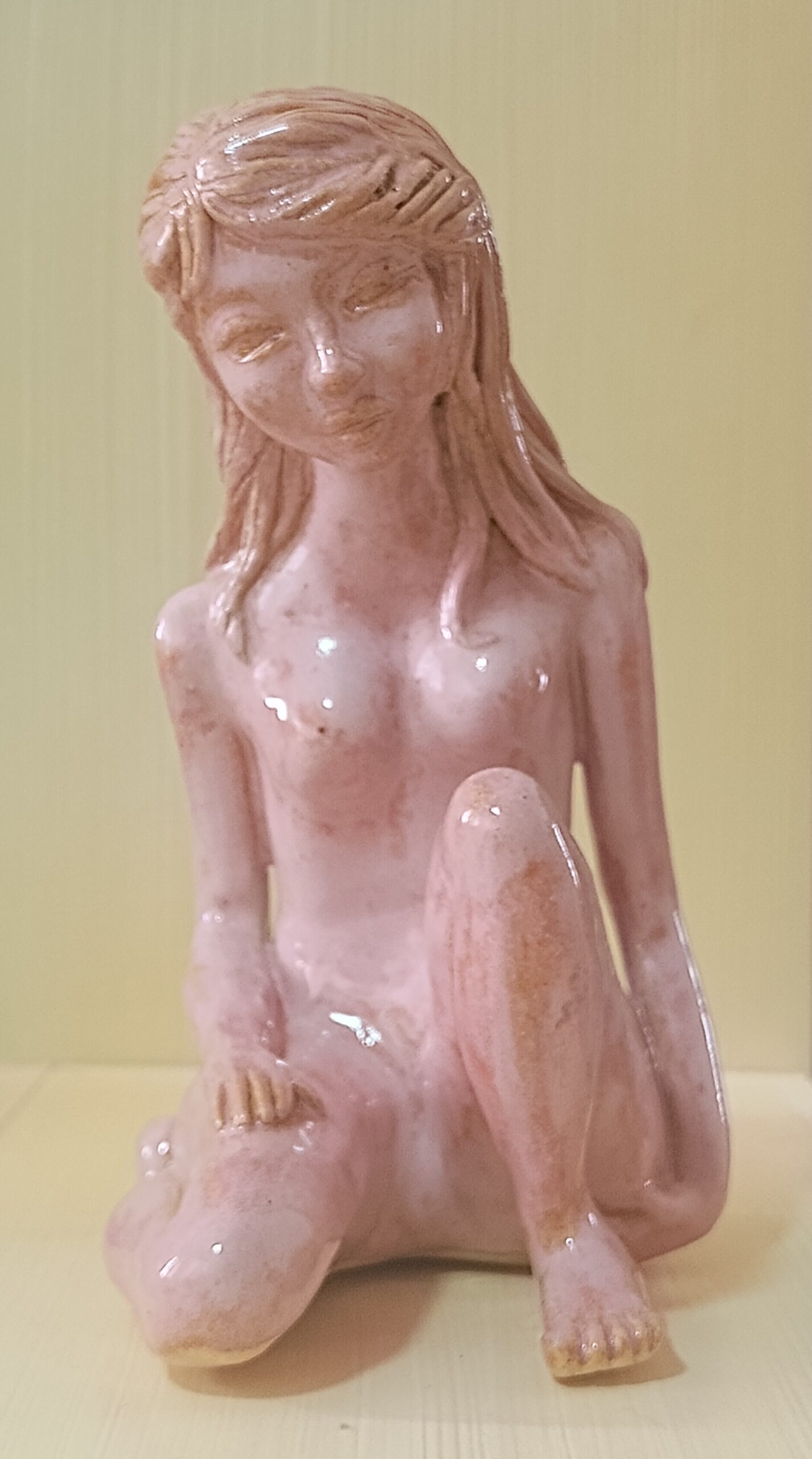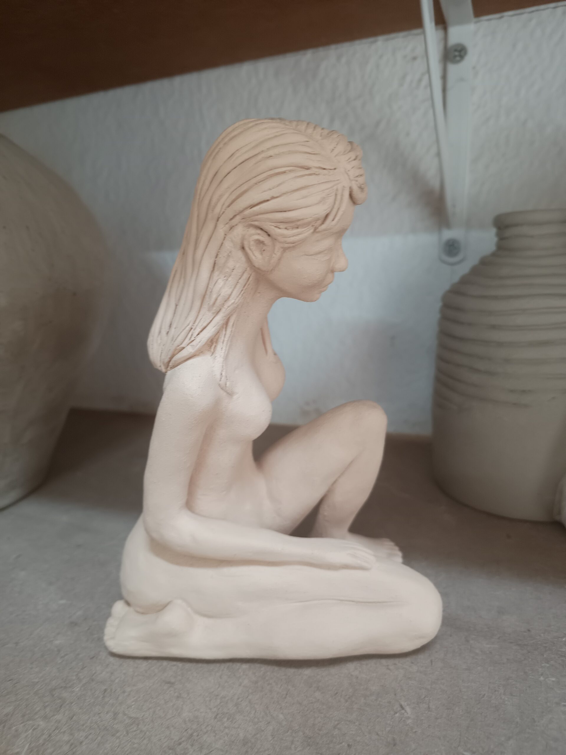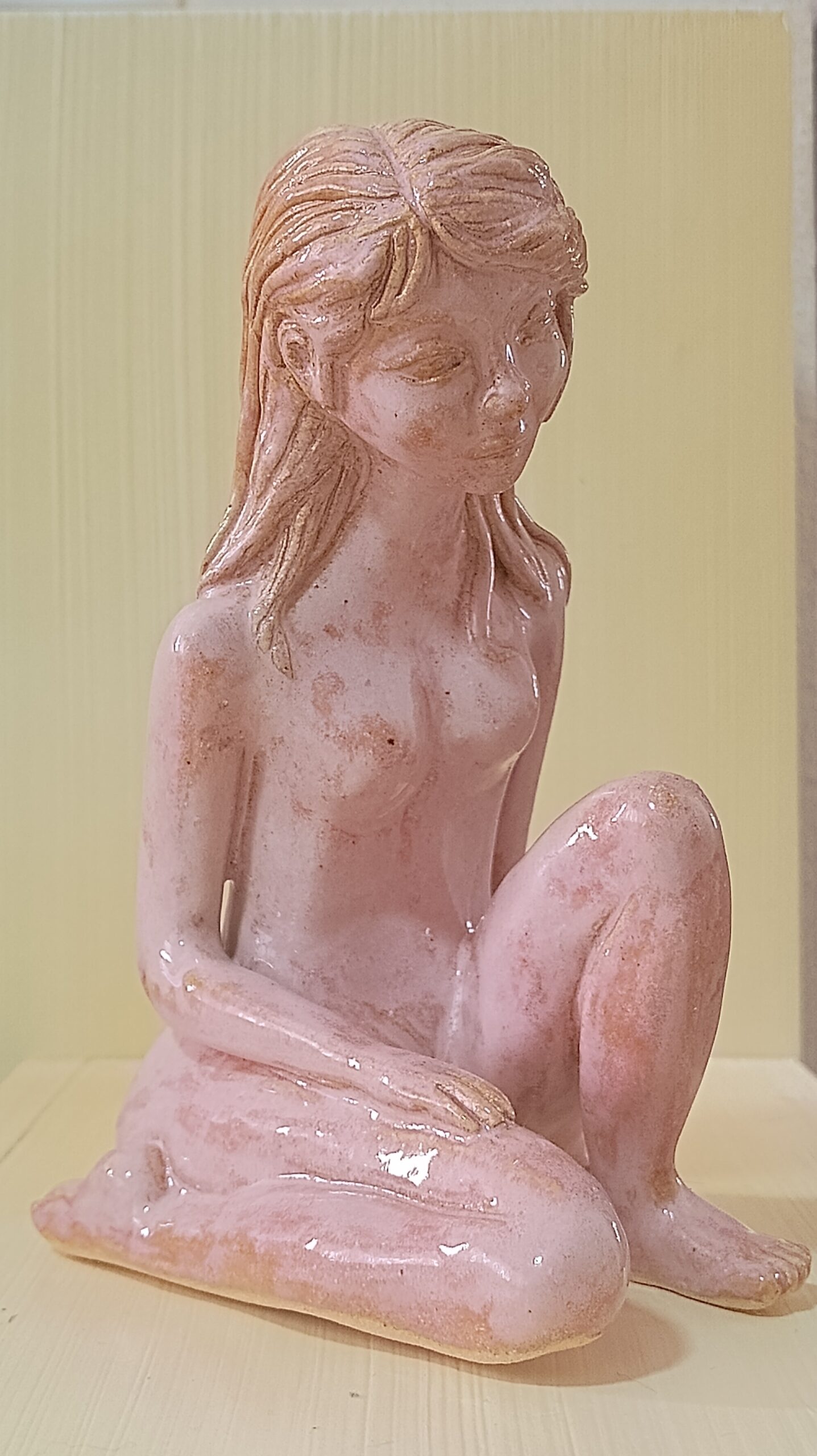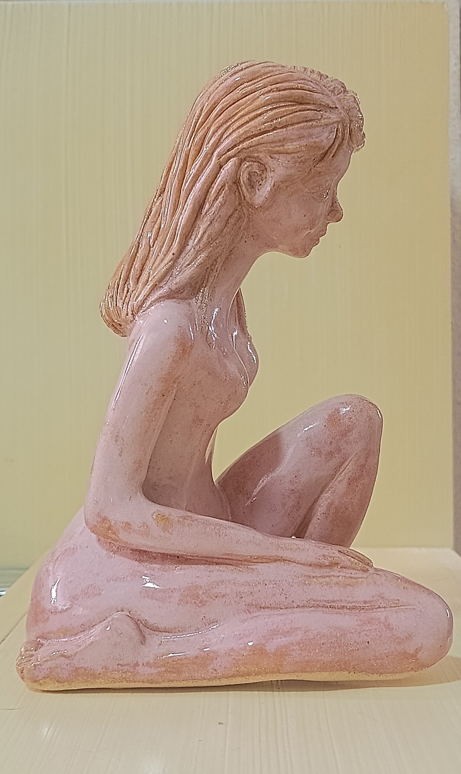 Portfólio Cerâmica Escultura feminina em rosa quartzo Essa obra mostra o equilíbrio da força e da vulnerabilidade feminina com delicadeza, evocando uma atmosfera de introspecção de onde renasce a resiliência da alma da mulher. Altura: 19,5cm Largura: 10cm Profundidade: 17cm Peso: 800g Comprar Comprar